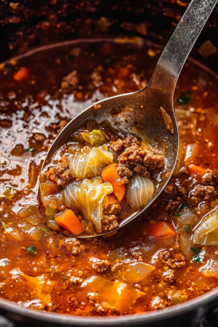 This hearty and comforting soup brings all the flavors of classic cabbage rolls in an easy, one-pot meal. Packed with ground beef, tender cabbage, rice, and a rich tomato broth, it's a warm and satisfying dish perfect for busy nights. Enjoy all the coziness of stuffed cabbage rolls with minimal effort!
