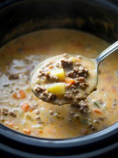 You can use ground turkey, chicken, or plant-based crumbles for a leaner or vegetarian option. - Can I make this soup in a slow cooker?