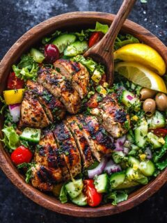 Packed with juicy grilled chicken, crisp veggies, creamy mozzarella, and a tangy homemade Italian dressing, it’s light yet satisfying and bursting with fresh flavors in every bite.