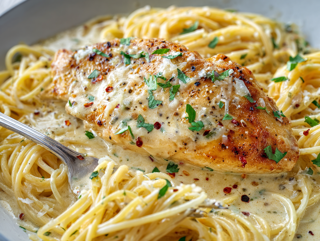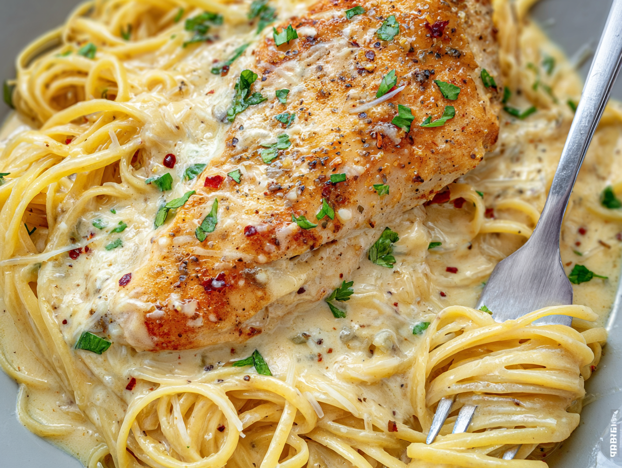 - Angel Hair Pasta – Light, delicate pasta that pairs perfectly with the creamy sauce and tender chicken.