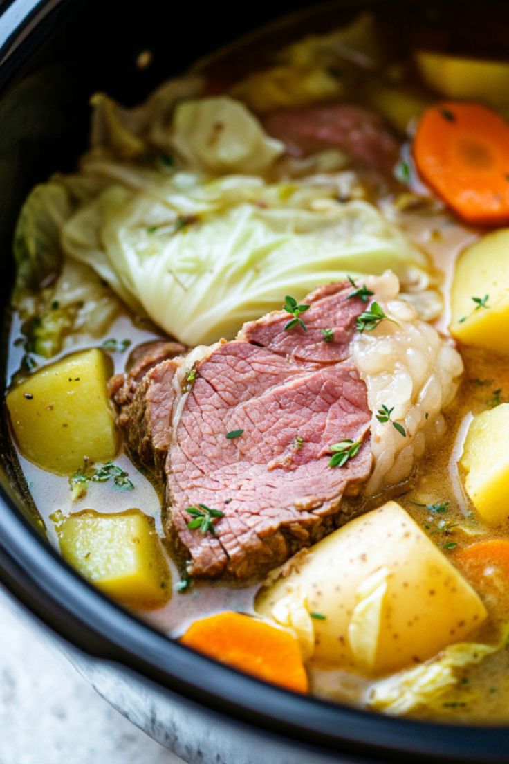 - Corned Beef Brisket – 2 lbs, lean and fat trimmed. This is the star of the dish—tender and flavorful when slow-cooked.