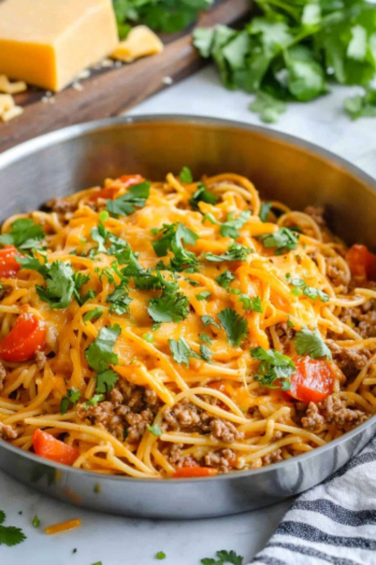 This one-pan wonder combines the best of tacos and spaghetti into a quick, easy meal that’s packed with flavor and ready in just 30 minutes.