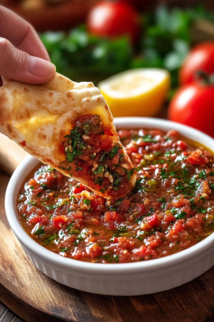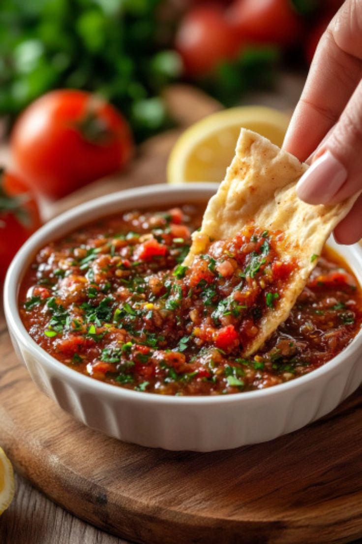 Imagine juicy tomatoes, smoky peppers, and a touch of tangy pomegranate molasses,