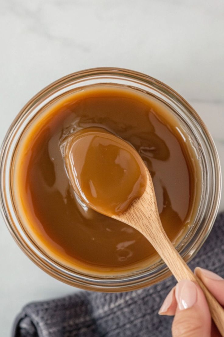 • Transfer the caramel to a glass jar with a lid and allow to cool completely. It will thicken as it cools.