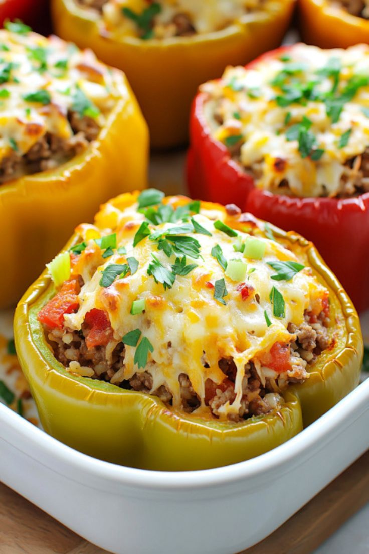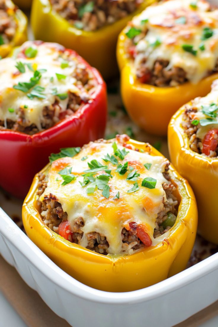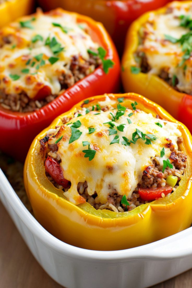 Stuffed peppers are the perfect balance of comfort and nutrition! Packed with seasoned ground beef, hearty rice, and sweet tomatoes, then topped with melted mozzarella cheese, they’re a deliciously satisfying meal that’s easy to prepare.